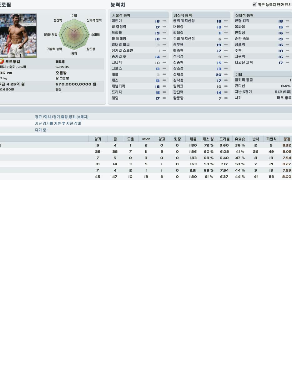 아쉽게도 호날두의 레알마드리드 이적으로 맨유로 하지 못하고 레알마드리드로 전술을테스트하게 되었습니다. 아주 다이나믹하고 역동적이고 빠른 역습 축구를 보실수 있을겁니다. 나만의 팁란에 도움이 되실만한 선수 성격 유형별 따른 라커룸 대화방법과 효과적인 감독 심리전 싸움에대해서 올렸습니다. 참고하시고 싶은분은 참고하시면 됩니다.