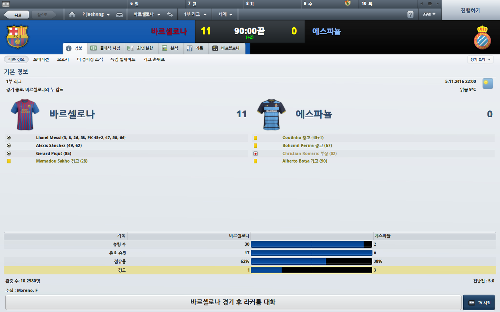 최대한 바르샤식으로 맞춘 4-3-3전술로 시즌을 꾸려갔습니다.
