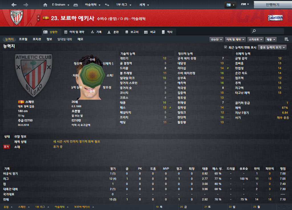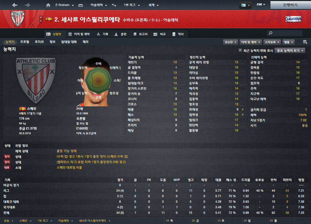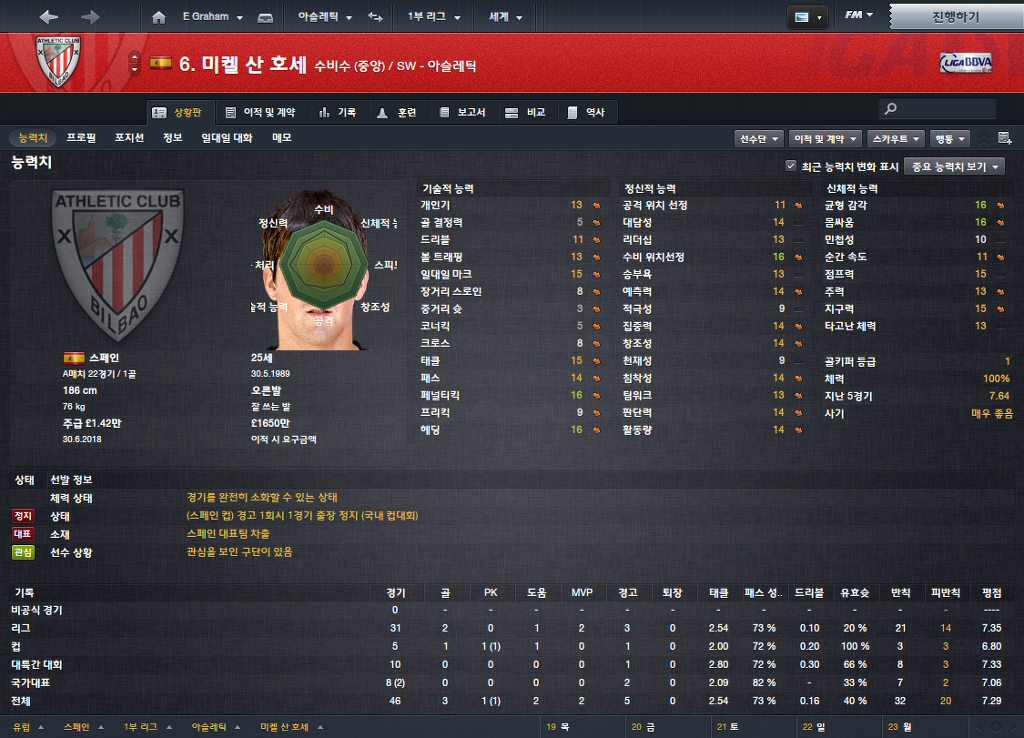 괜찮은 스페인산 오른쪽 풀백이네요. 키웠더니 매력적인 능력치입니다 +_+