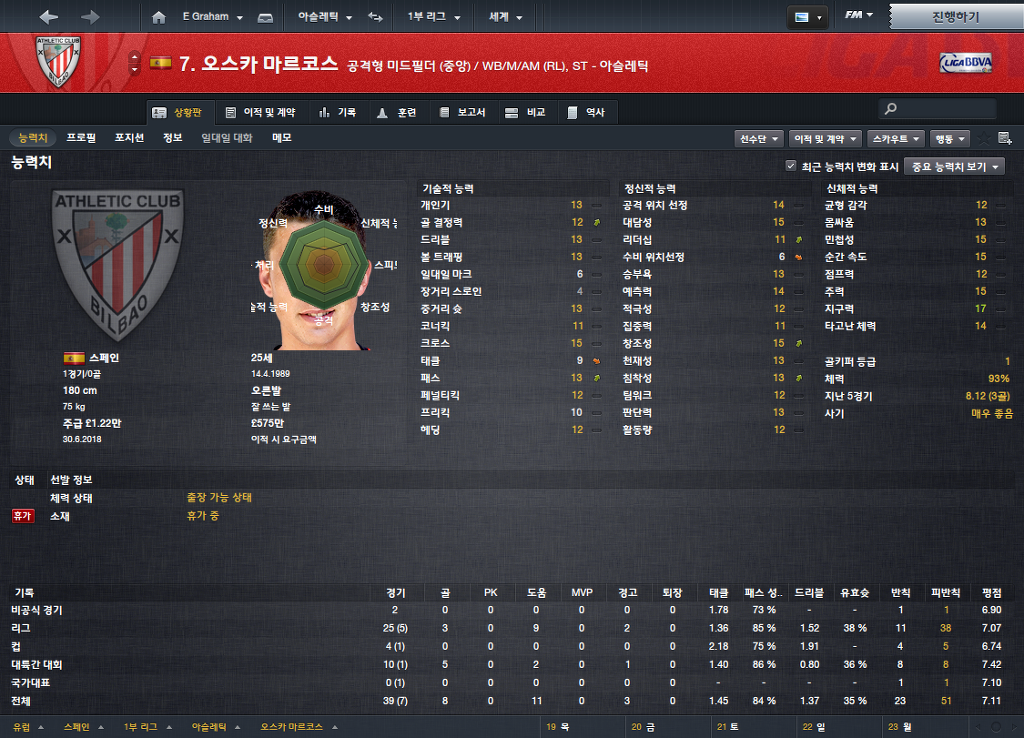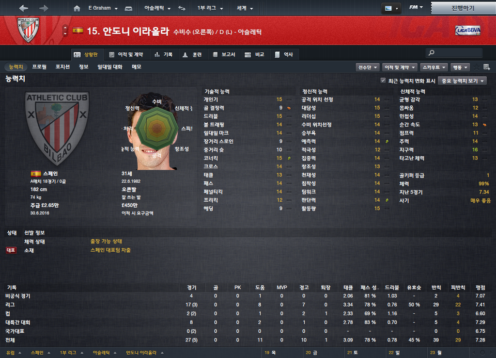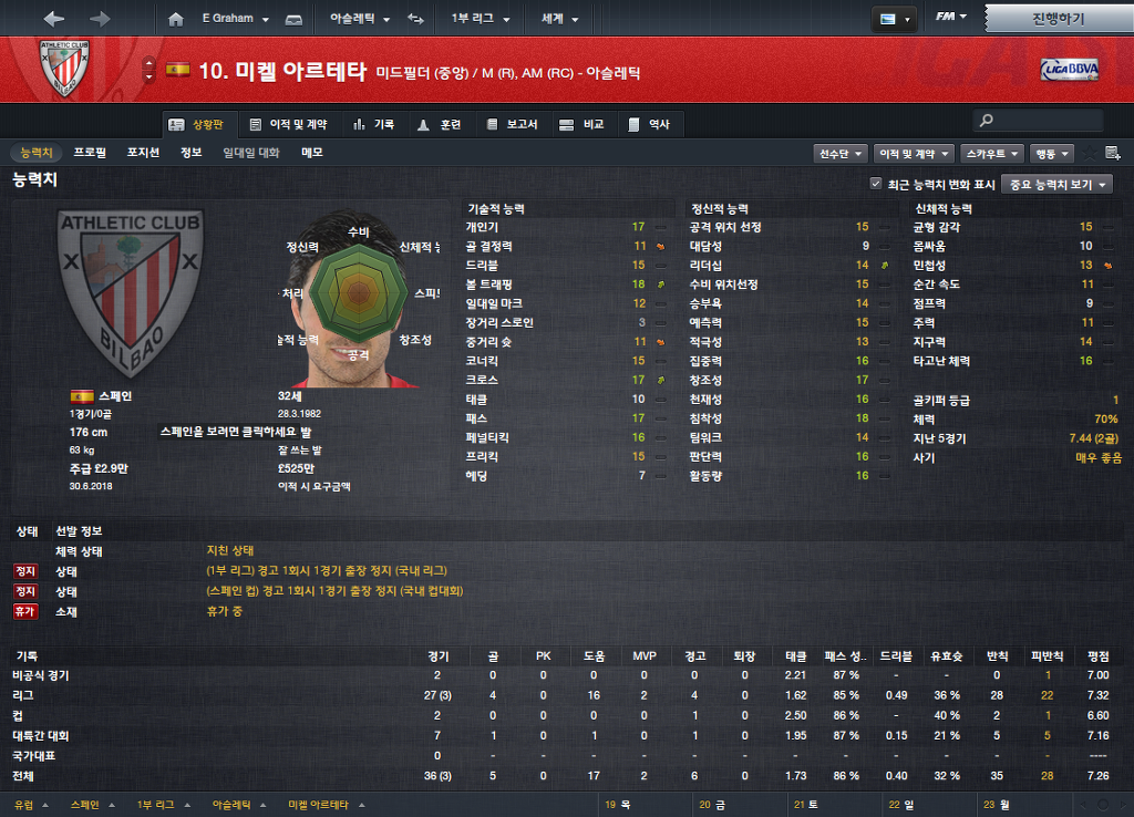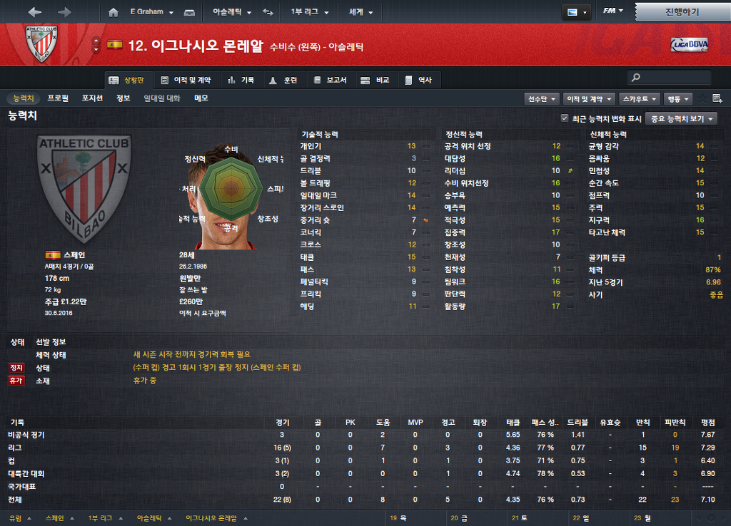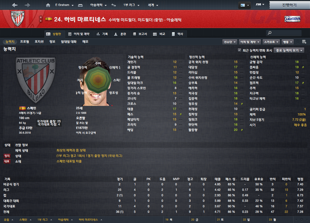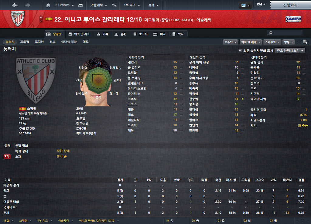 이젠 꽤 균형잡힌 능력치를 가진 이니고 루이스 갈라레타입니다.