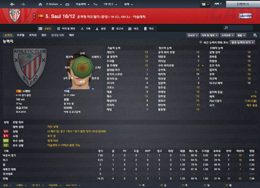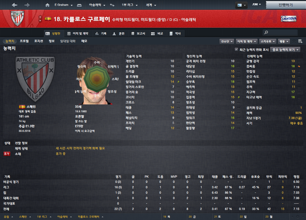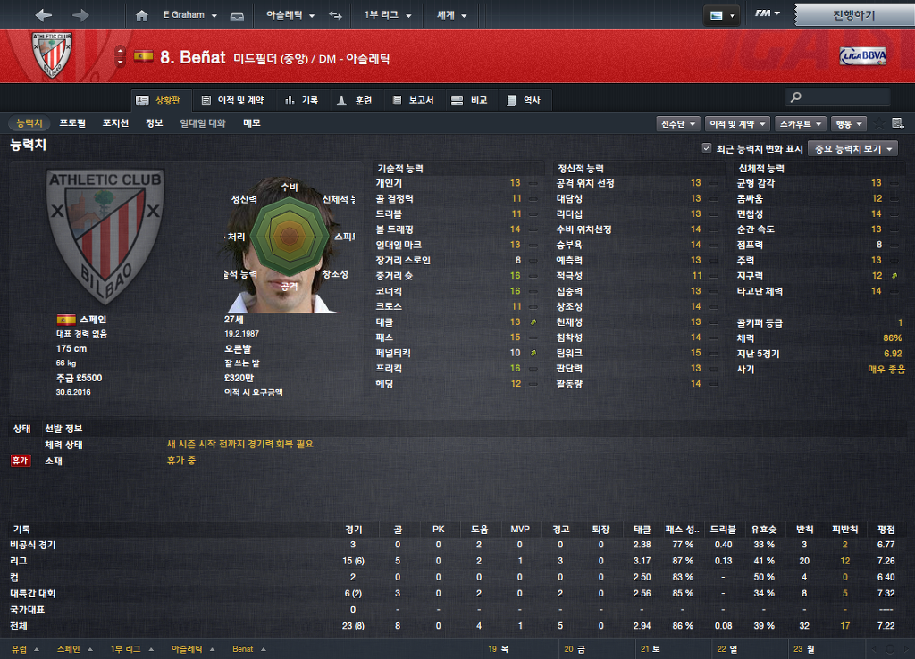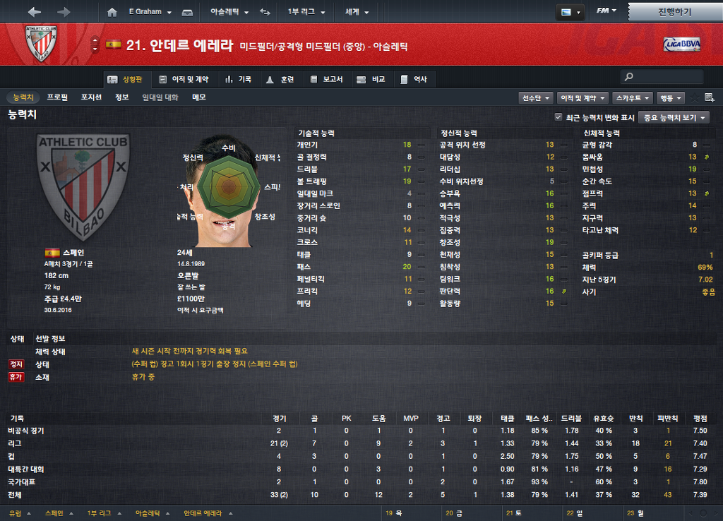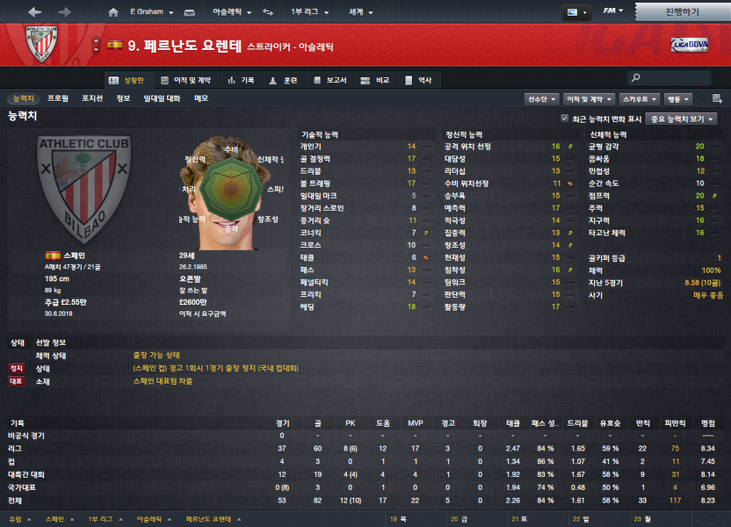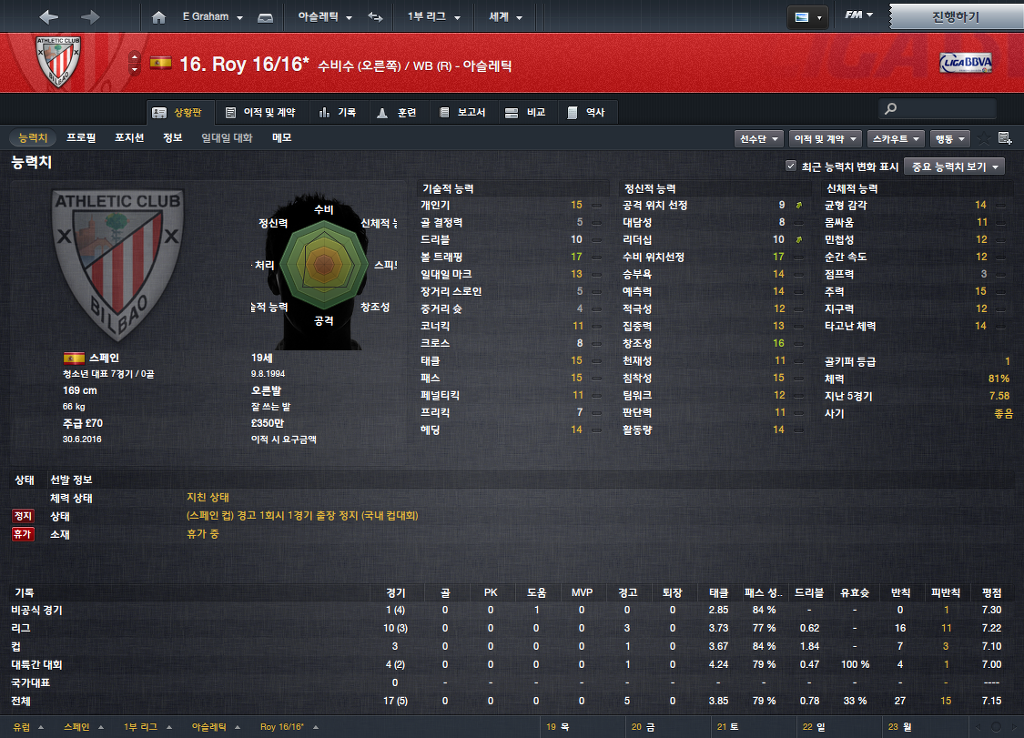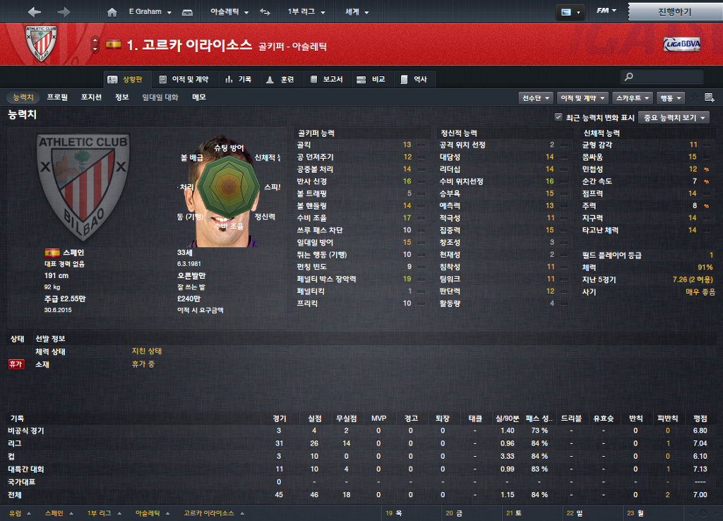 이젠 꽤 균형잡힌 능력치를 가진 이니고 루이스 갈라레타입니다.