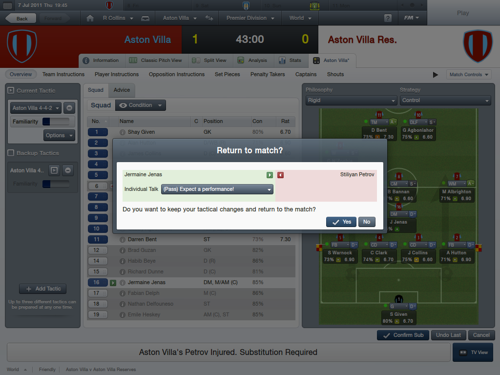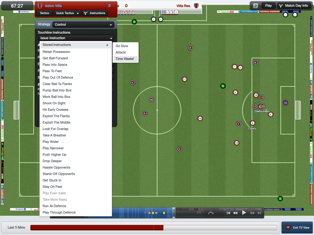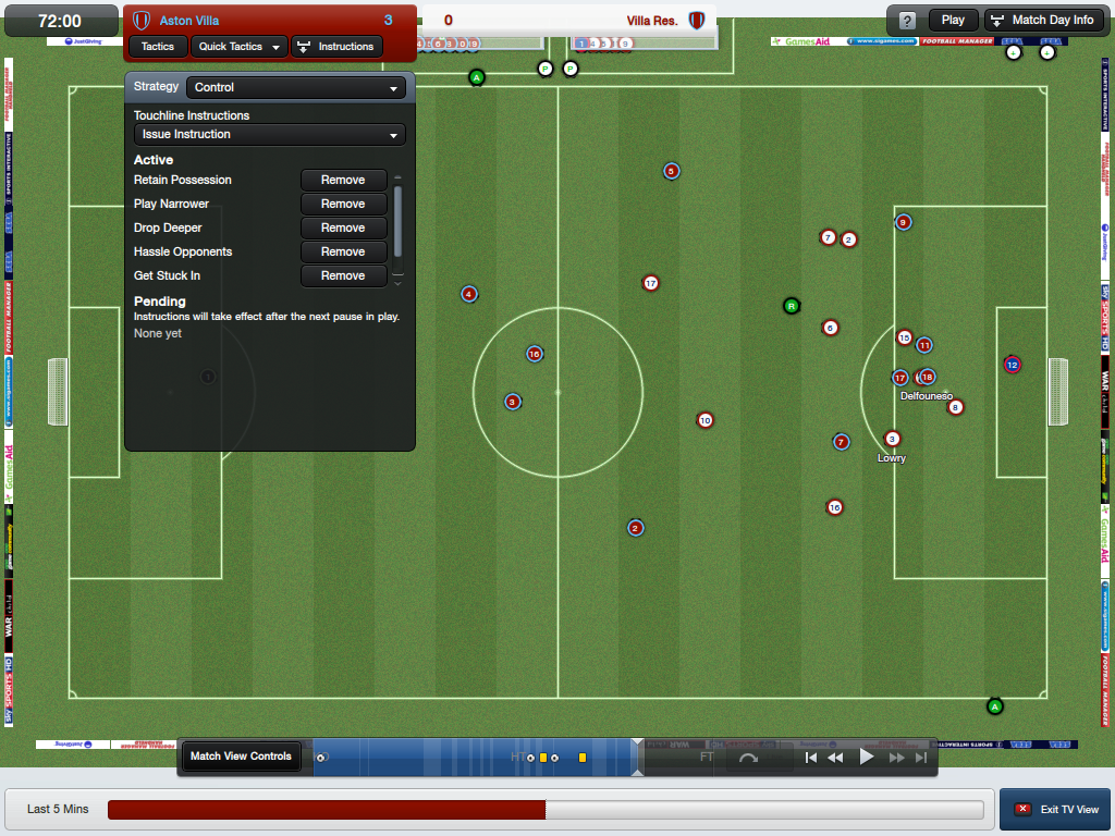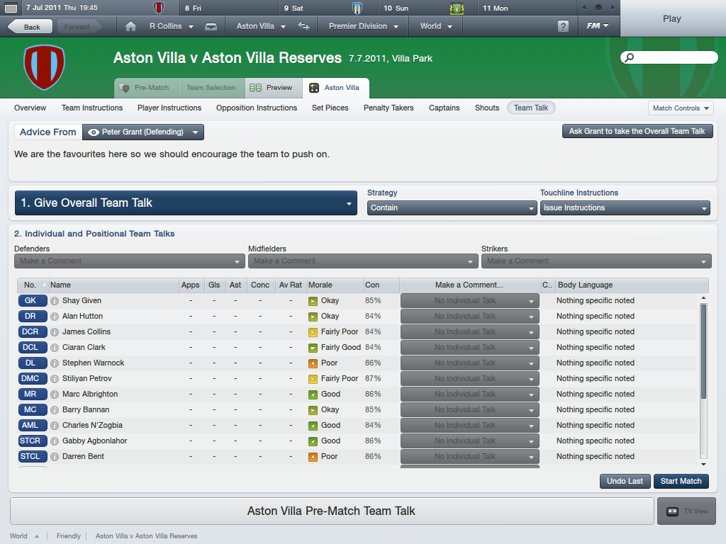 그리고 Team Talk에서 전술의 성향(2011에서 지배형, 역습형 등으로 등장했던 것)과 지시 사항 하나를 정할 수 있습니다.