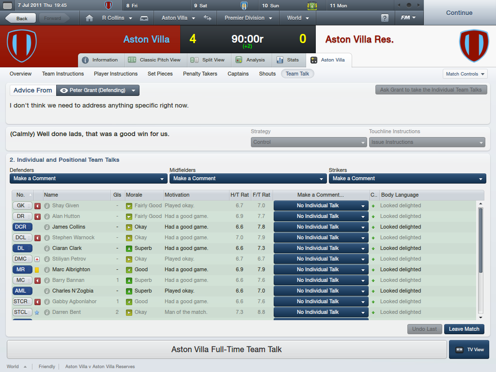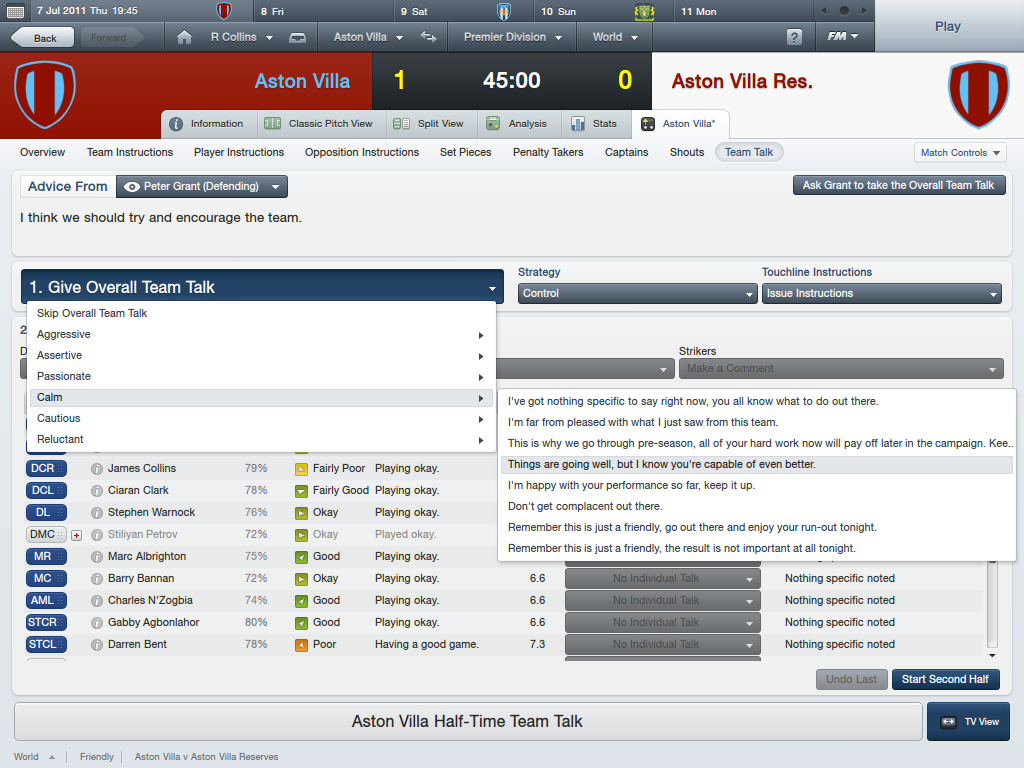 전반이 끝나면 역시 Team Talk를 할 수 있습니다.