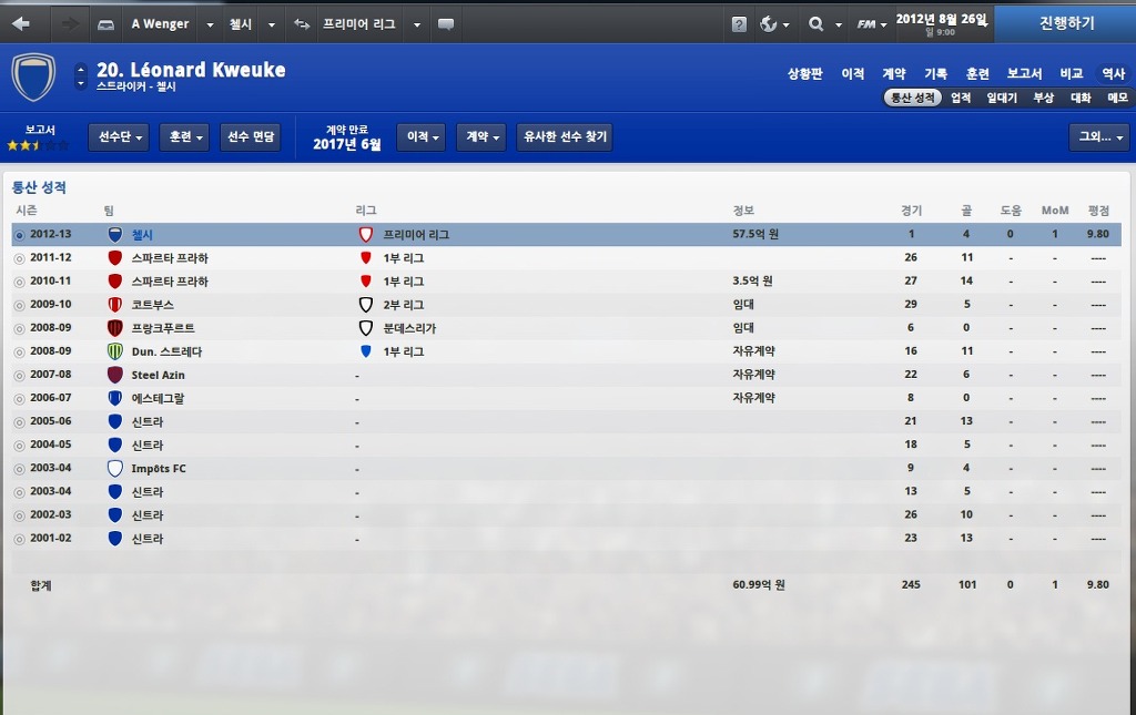 스파르타 프라하에서 57.5억 이적 허용조항도 있어서 싸게 물어오기 괜찮은거 같네요