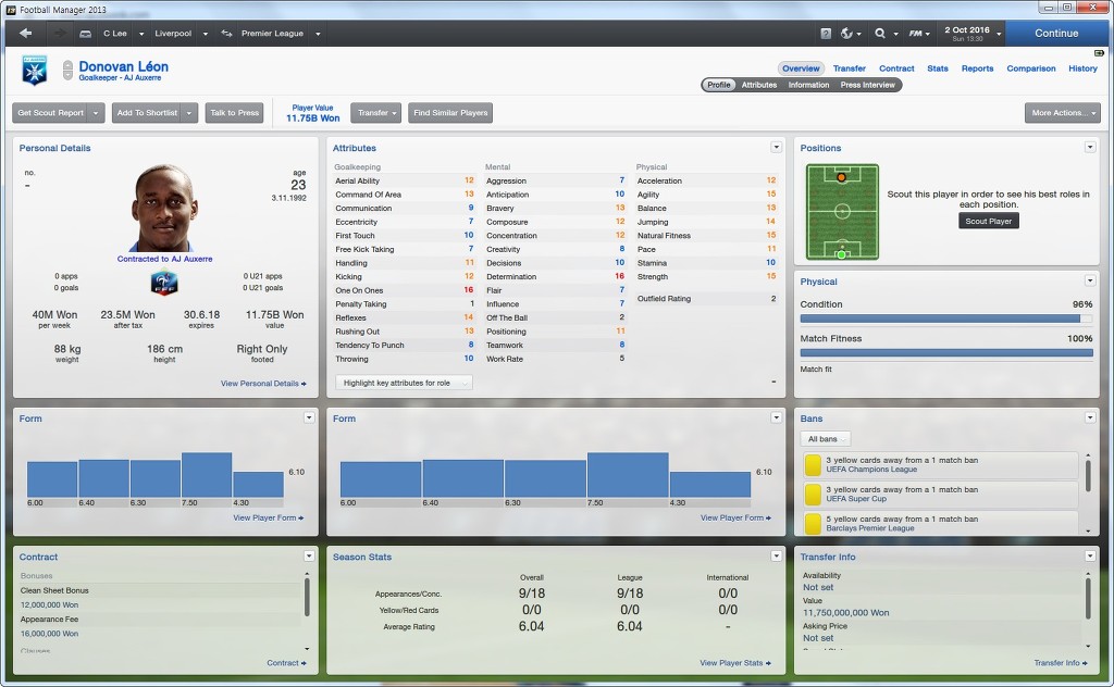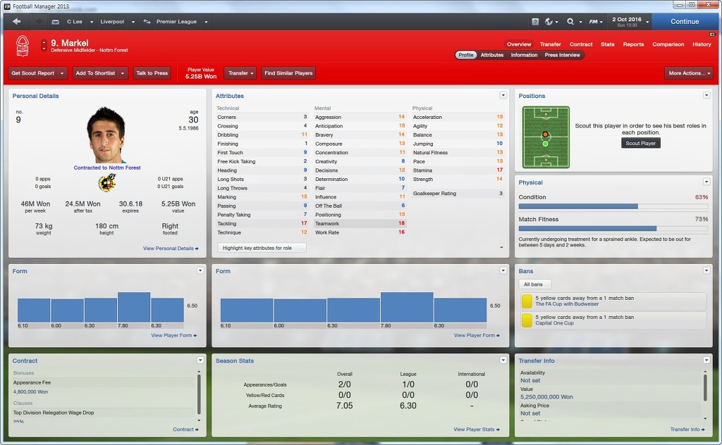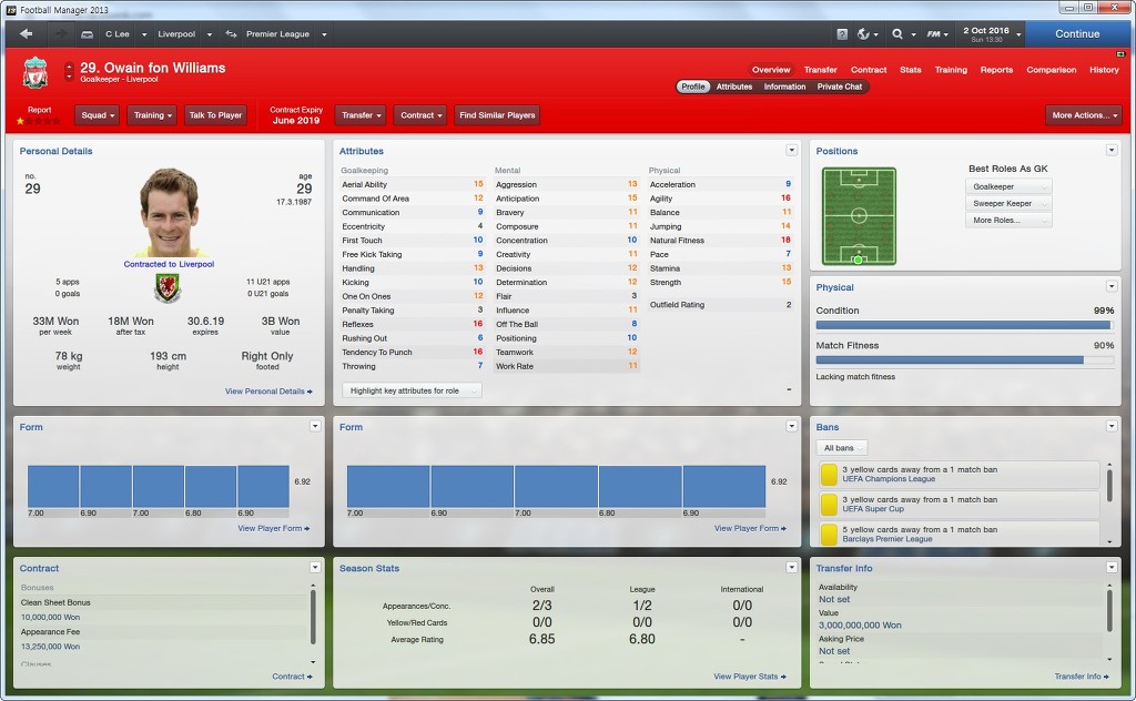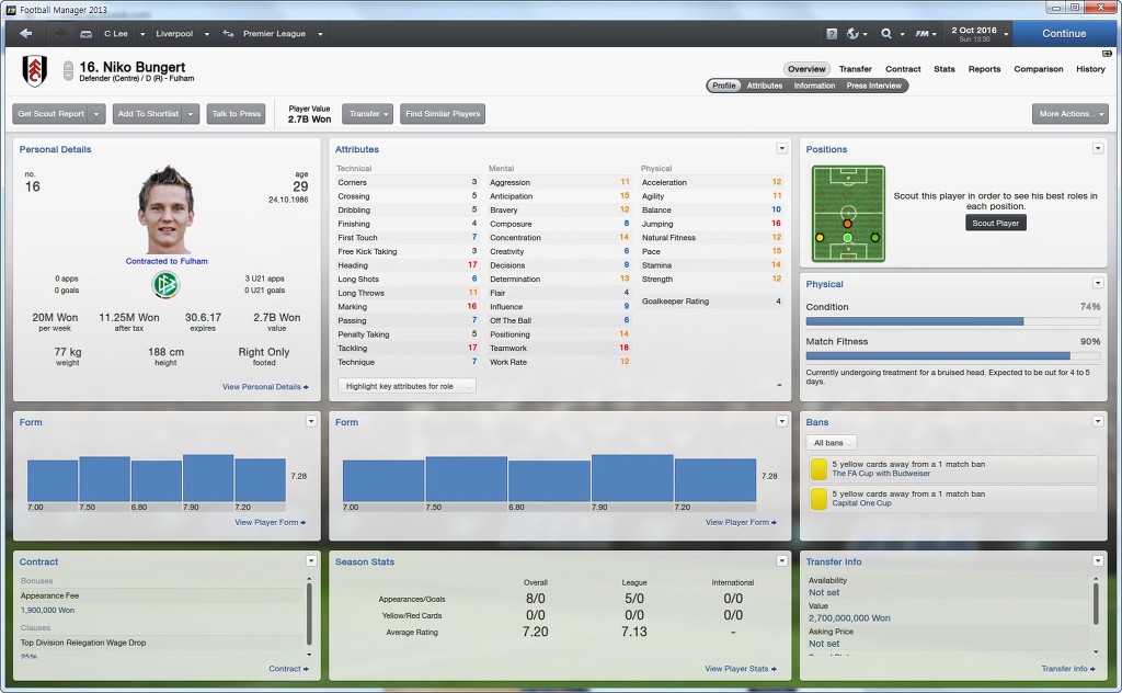 센터백으로서 필요한 능력치만 쏙쏙 가지고있습니다.
