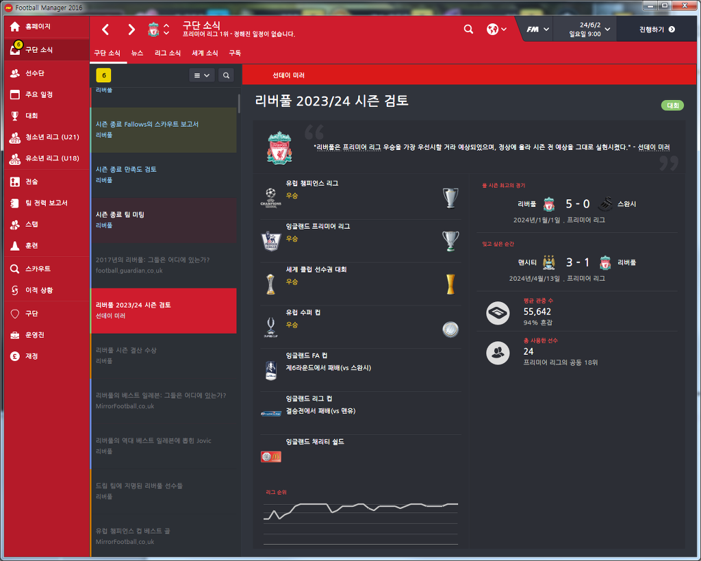 마지막으로 23/24시즌 더블을 이뤄낸 리버풀 스쿼드를 올리고