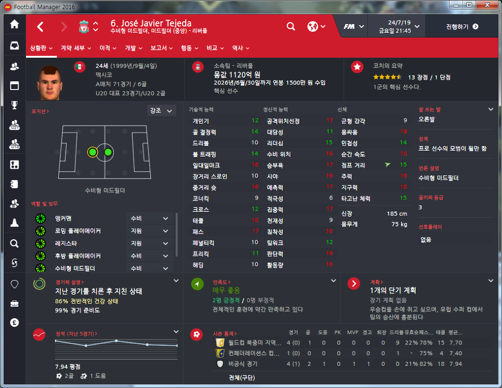 18/19시즌에 치바스에서 205억에 데리고 와서 개꿀로 쓰는중