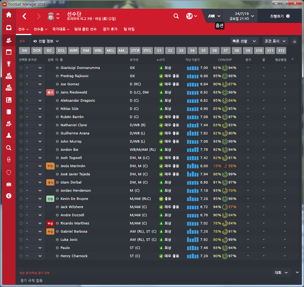 이제 아는인물들 보다는 슬슬 생성 선수들로 가득차기 시작하네염.