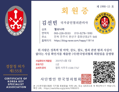 사단법인 한국열쇠협회의 회원업소를 이용하시고 국가공인 열쇠관리사 자격증이 있는지도