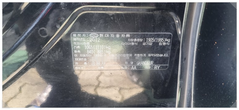 차량의 정보는 2012년식 현대