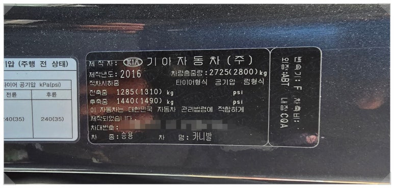 2016년식 기아 올뉴카니발(YP) 차주님께서