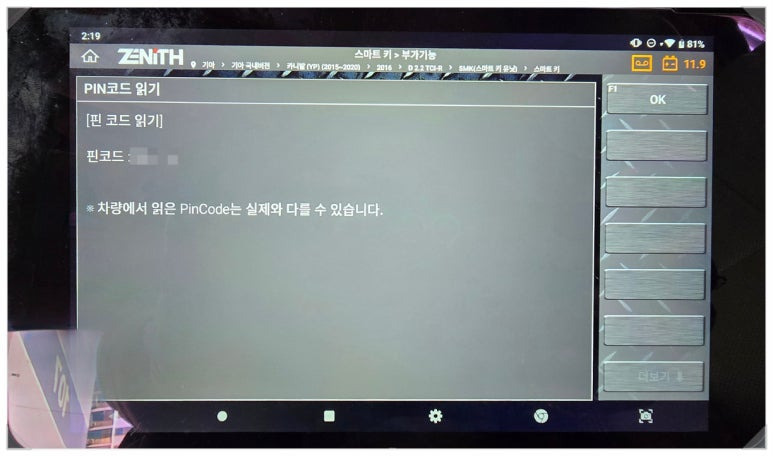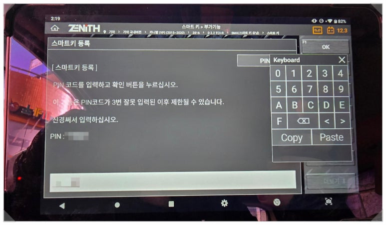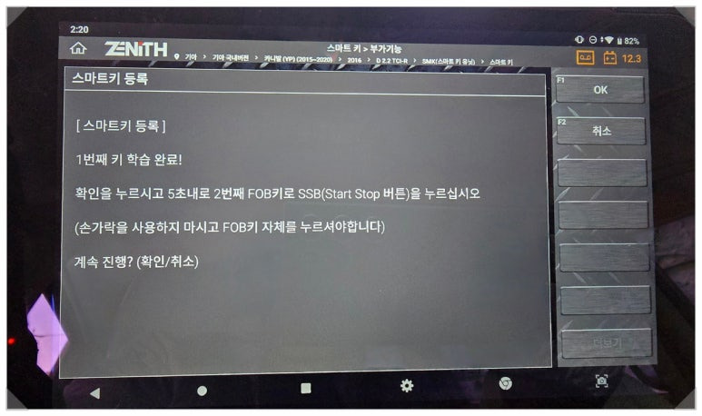 미리 준비해 간 2016년식 올뉴카니발 순정 스마트키를