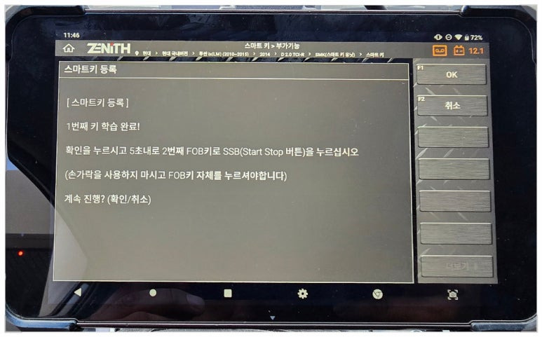 준비해 간 2013년식 투싼ix 순정 스마트키를 등록합니다.