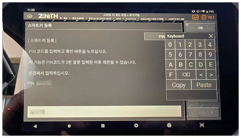 정확한 **보안 핀코드(Pin Code)**를 입력해야만 시동이 걸리는데요,
