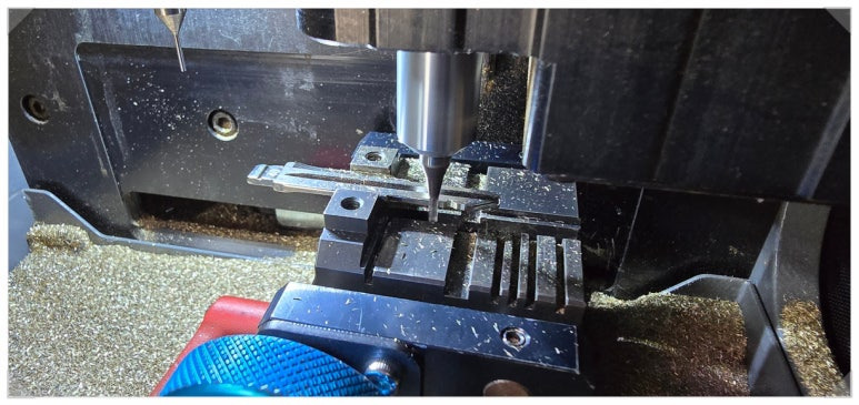 징~ 징~ 기계가 정교하게 키 블레이드를 깎아냅니다.