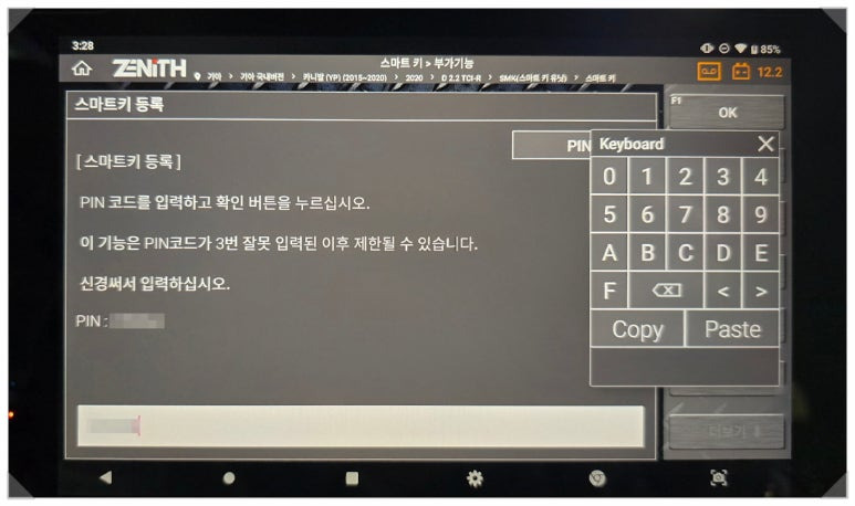 고유의 보안 코드인 핀코드(Pin Code)를 입력하여 스마트키 등록을 진행합니다.