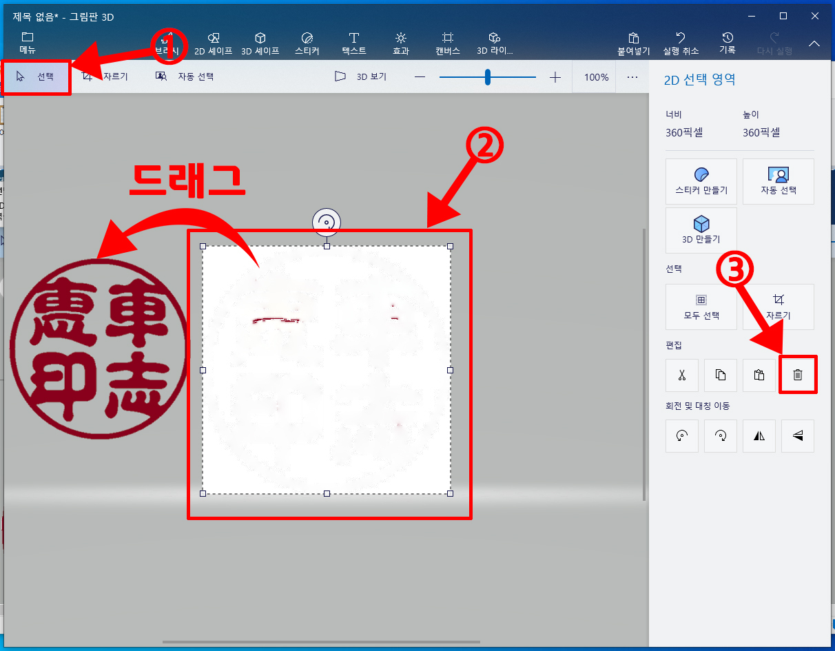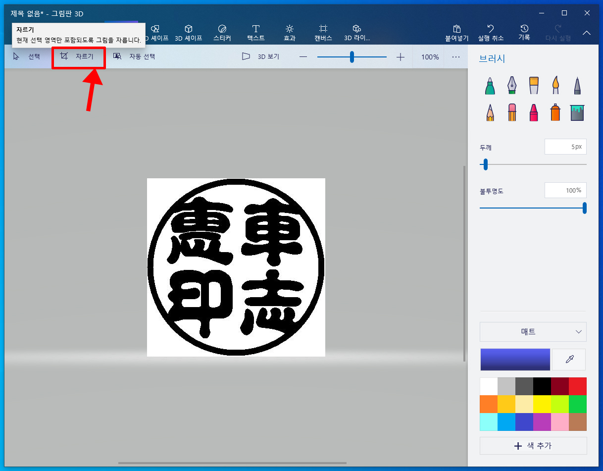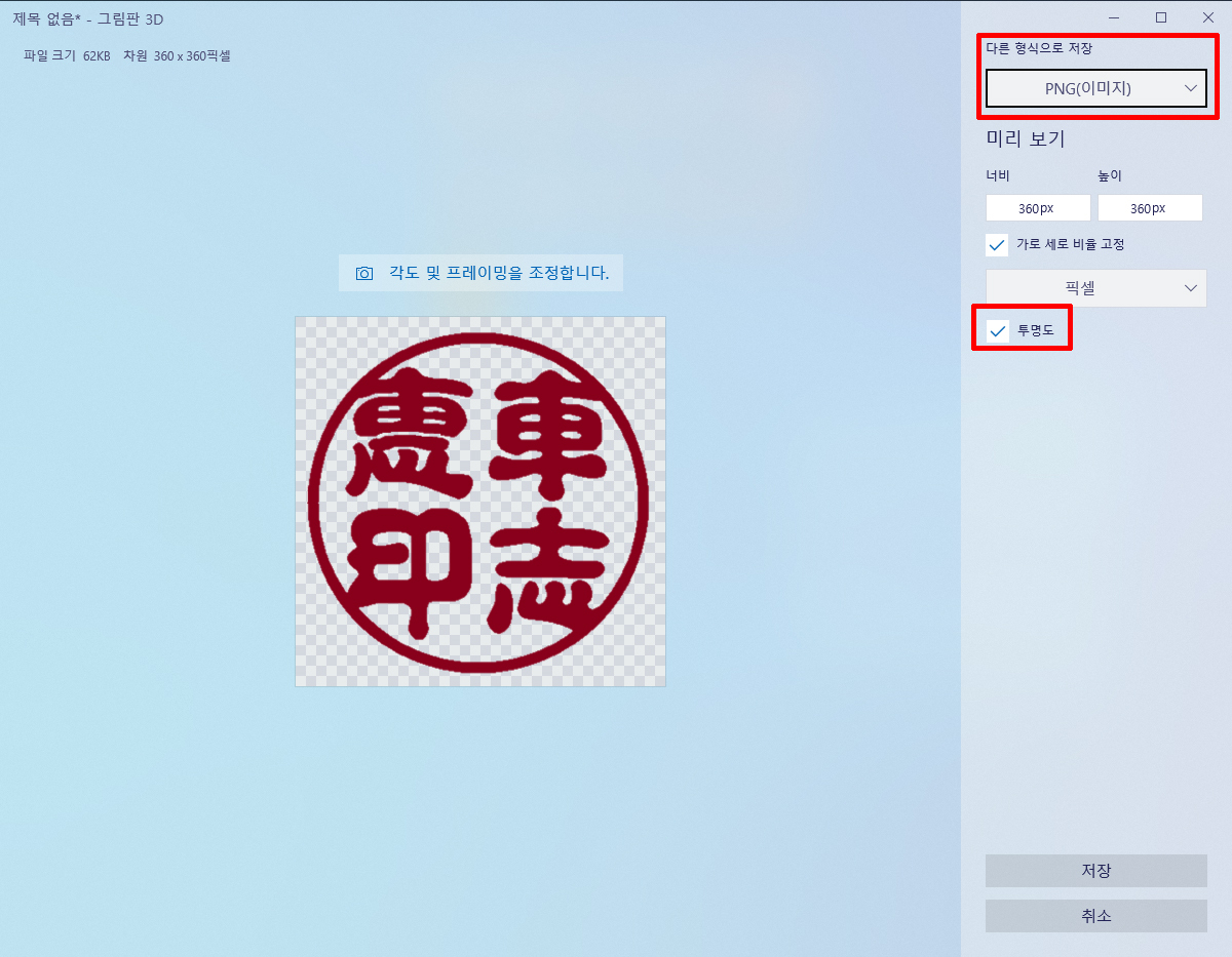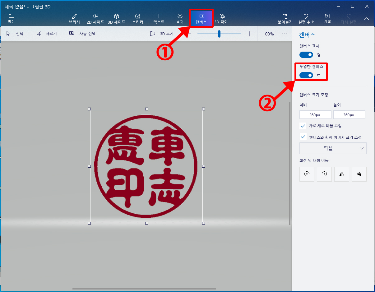[윈도우10] 도장도안을 저장시, 흰색배경 없애는방법(그림판 3D)