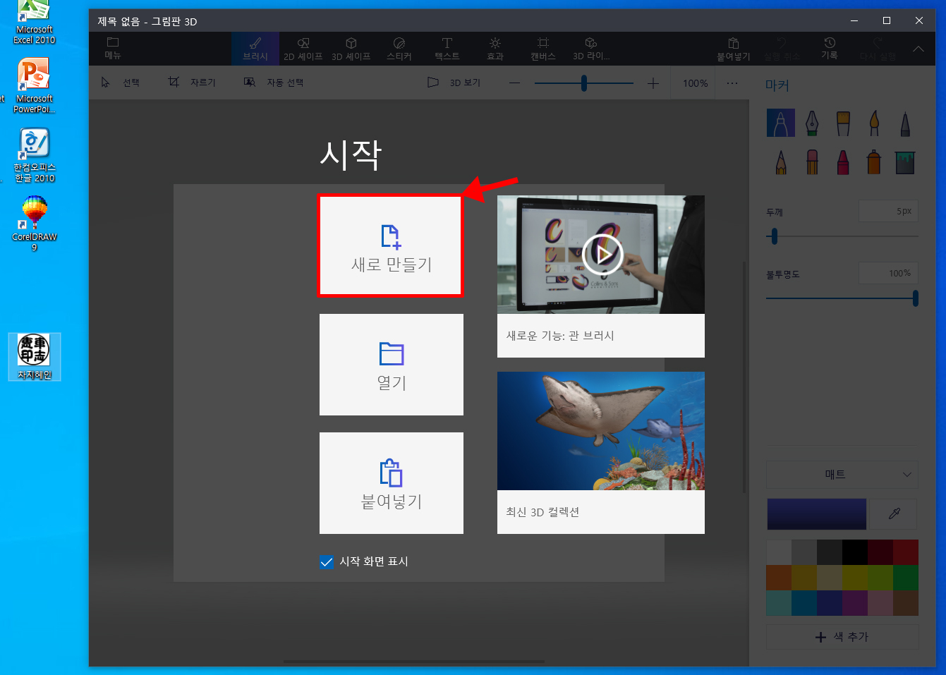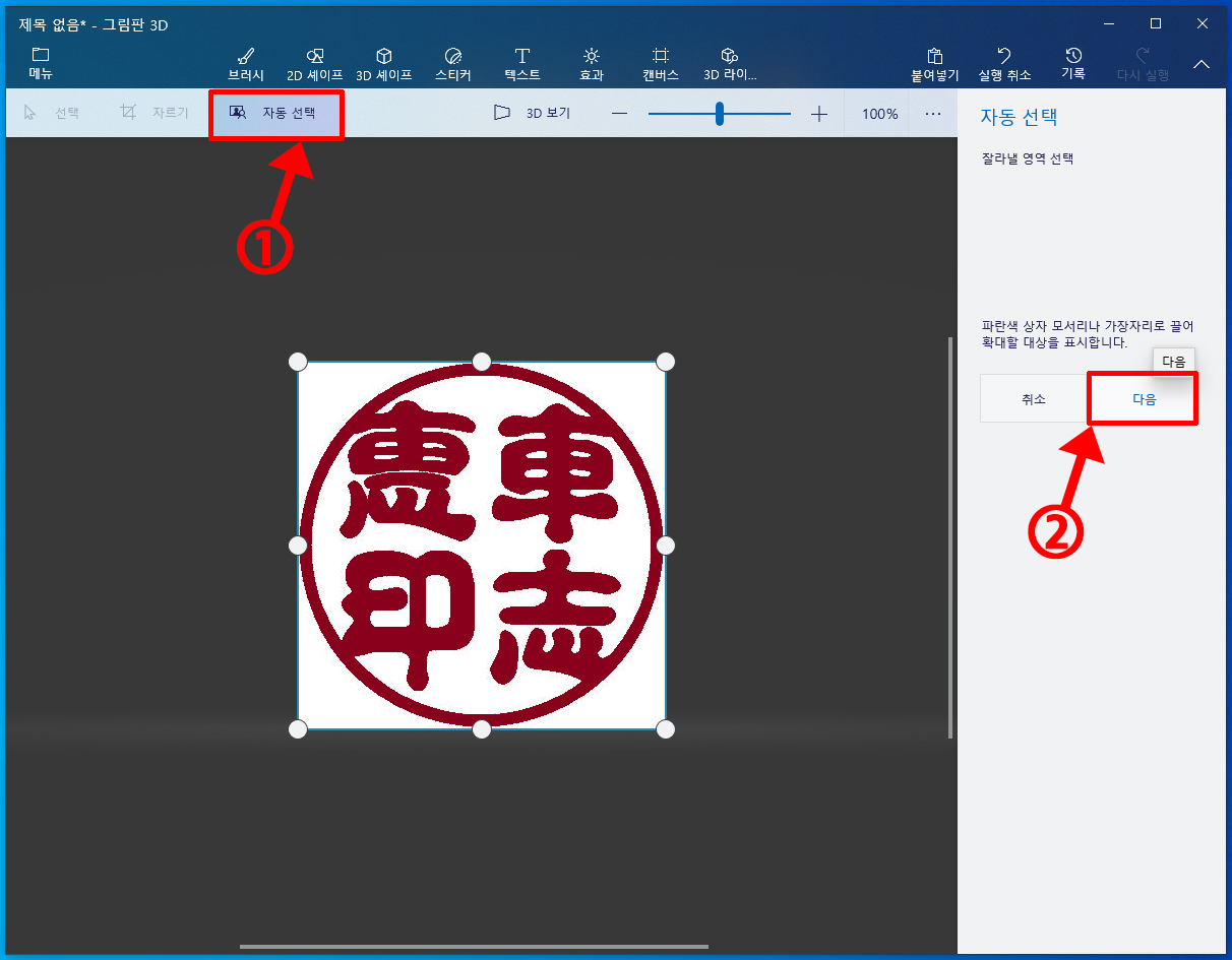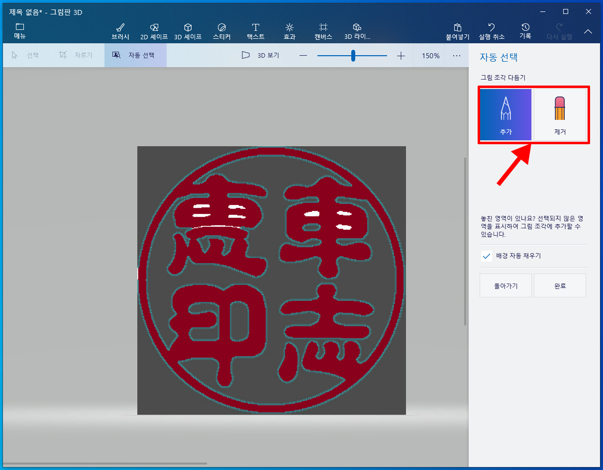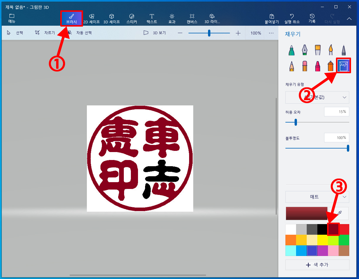 [윈도우10] 도장도안을 저장시, 흰색배경 없애는방법(그림판 3D)