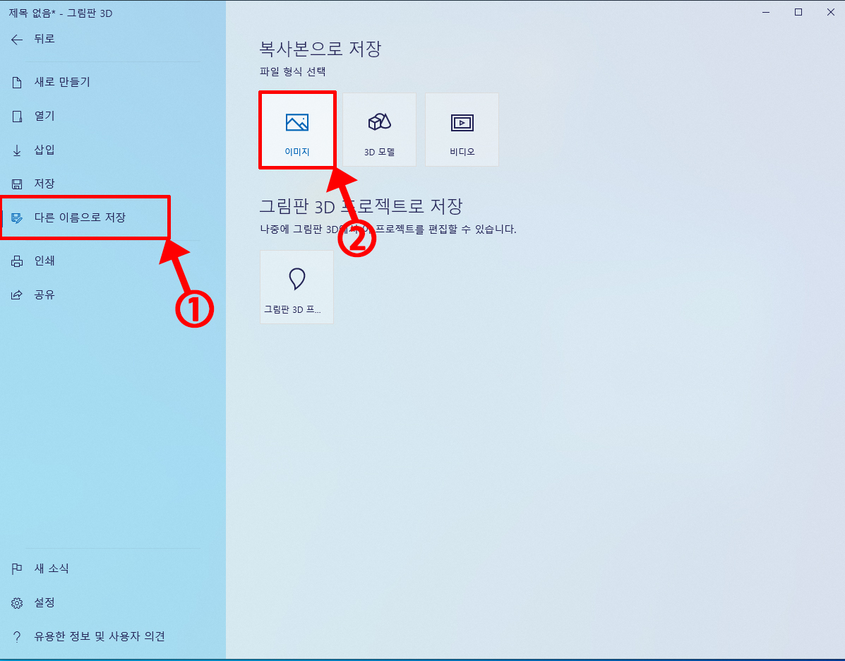 다른 이름으로 저장 > 이미지를 선택해주세요.