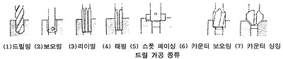 이외에도 직선홈 드릴, 평드릴, 반원드릴, 센터드릴 등이 있다.