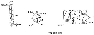 3) 날 여유: 드릴 끝이 깎는 날 뒷면이 뚫린 구멍 끝의 원뿔면과 마찰하지 않도록 만든 여유를 날 여유라 한다.