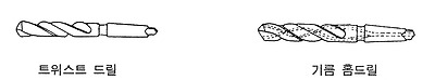 가장 널리 쓰이는 드릴은 두줄 비틀림(트위스트)홈 드릴이고,