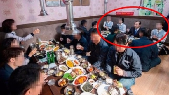 그런데 사진 속의 자리배치는 의전의 기본이 전혀 아닙니다. 회식을 준비하면 부서 직원들이 먼저 착석한 뒤에 시장이 앉을 자리를 비워두고 기다리게 됩니다. 그런데 저렇게 여직원에 둘러 싸여서 앉게끔 유도를 했다는 것은 인위적으로 누군가가 의도를 가지고서 저런 자리를 조성했다고 봐야겠죠.