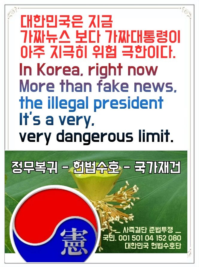 Some may say, "Even though the cause is invalid, isn't the president elected by a presidential election?" However, Moon JaeIn cannot be a legitimate president because of the clear legal reason that an election to elect a new president cannot be held with the President who has not been vacated by the Constitution due to illegal impeachment that has not followed the law. This principle is no different for Yoon, SeokYeol, the successor of the illegal regime.