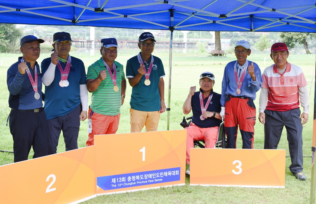 남자단체전 1위 충주 김덕돈 김덕영 선수, 2위 제천 선수단, 3위 청주선수단.