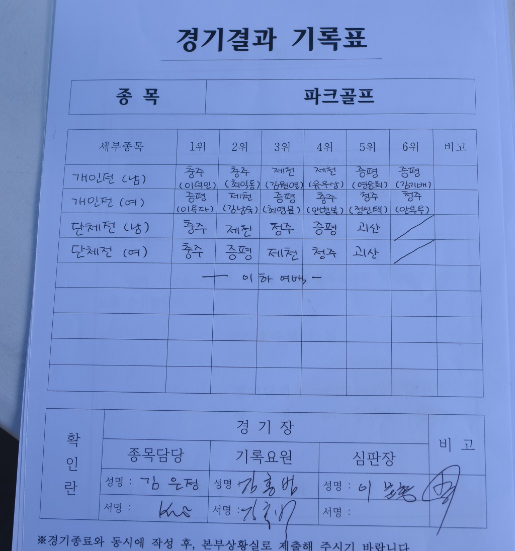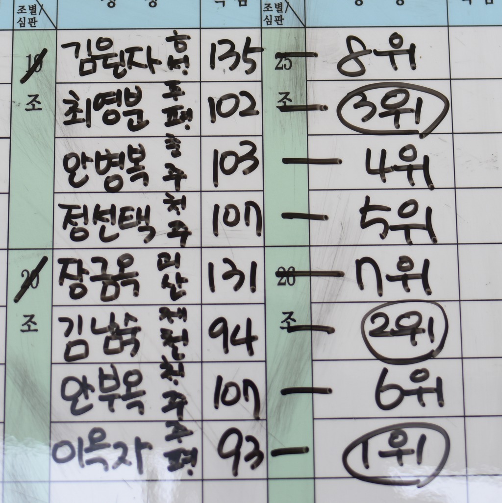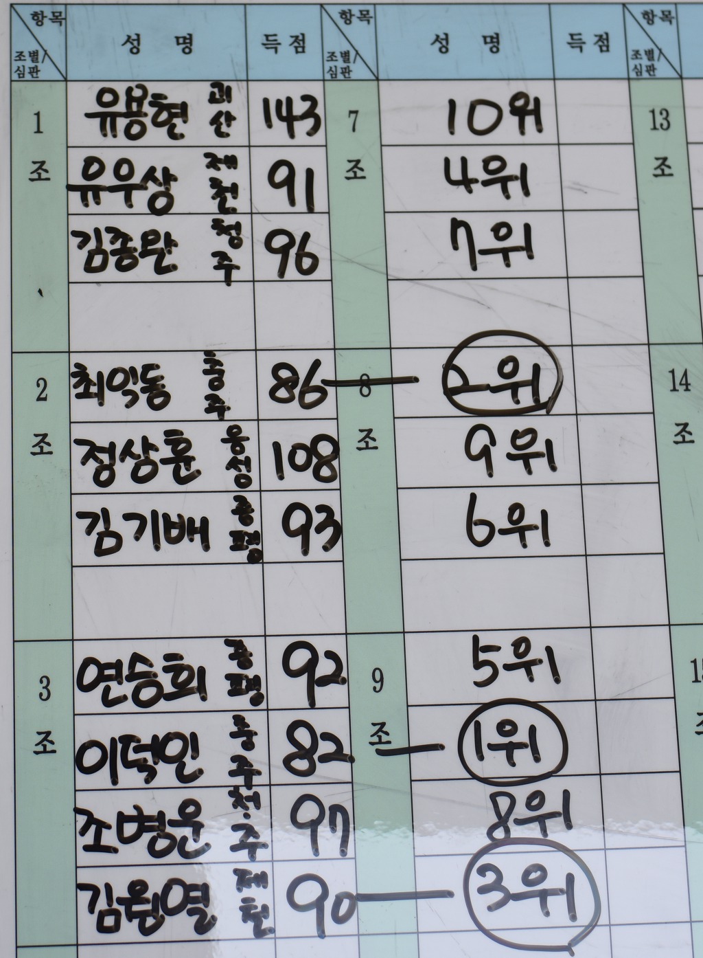 남자 개인전 1위 충주 이 덕인 선수 , 2위 최 익동 선수, 3위 제천 김원열 선수.