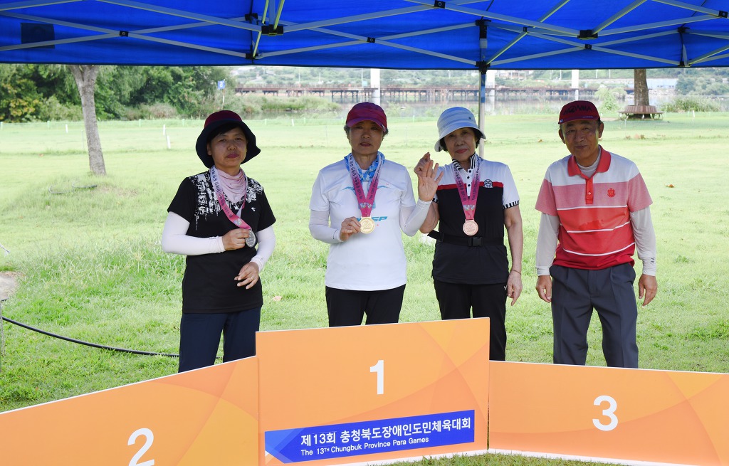 여자단체전 1위 충주 안병복 양진미 선수, 2위 증평선수단, 3위 제천선수단.