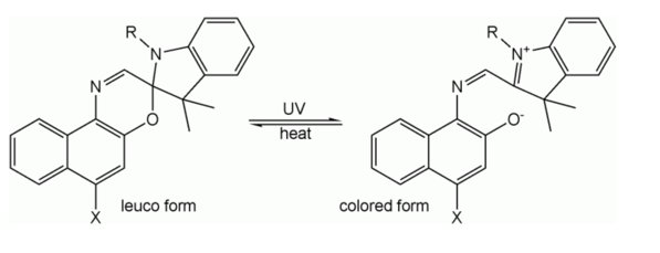 광변색 염료 분자가 자외선을 받으면 분자의 구조가 변하면서 특정 파장의 빛을 반사하게 됩니다.