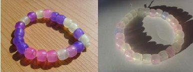자외선 비즈 목걸이 만들기는 오늘 한 실험중에서 가장 간단하고 가장 쉬운 실험이었다. 실험 과정이 간단햇던것에 비해 실험 원리를 통해 광변색 염료에 대해 알게 된것 같아 뿌듯했다. 또 나는 햇빛이 강한 날에만 잘 될줄 알았는데, 막상 학교 과학실에 나와서 목걸이를 보니 갑자기 변해 놀라웠다.