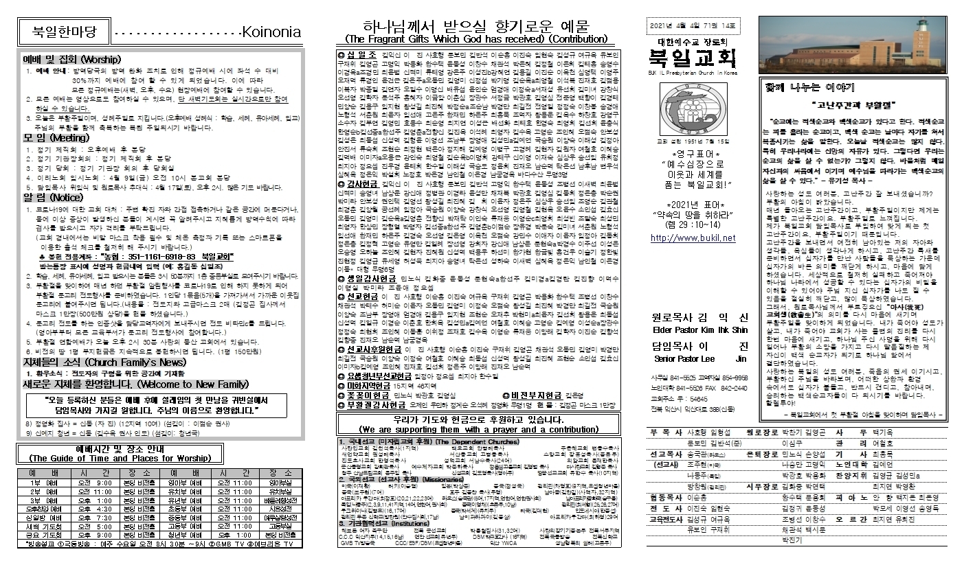 북일교회 2021년 4월 4일 주보입니다. 작성자사호행(명랑아)|작성시간21.04.03|조회수472 목록 댓글 0 글자크기 작게가 글자크기 크게가 장년주보(2021년 4월 4일).pdf433.23KB 첨부파일첨부된 파일이 3개 있습니다. jpg 파일 장년주보(2021년 4월 4일)001.jpg 다운로드 jpg 파일 장년주보(2021년 4월 4일)002.jpg 다운로드 pdf 파일 장년주보(2021년 4월 4일).pdf 다운로드 다음검색 현재 게시글 추가 기능 열기 북마크 신고 센터로 신고 댓글 댓글 0 댓글쓰기 답글쓰기 댓글 리스트
