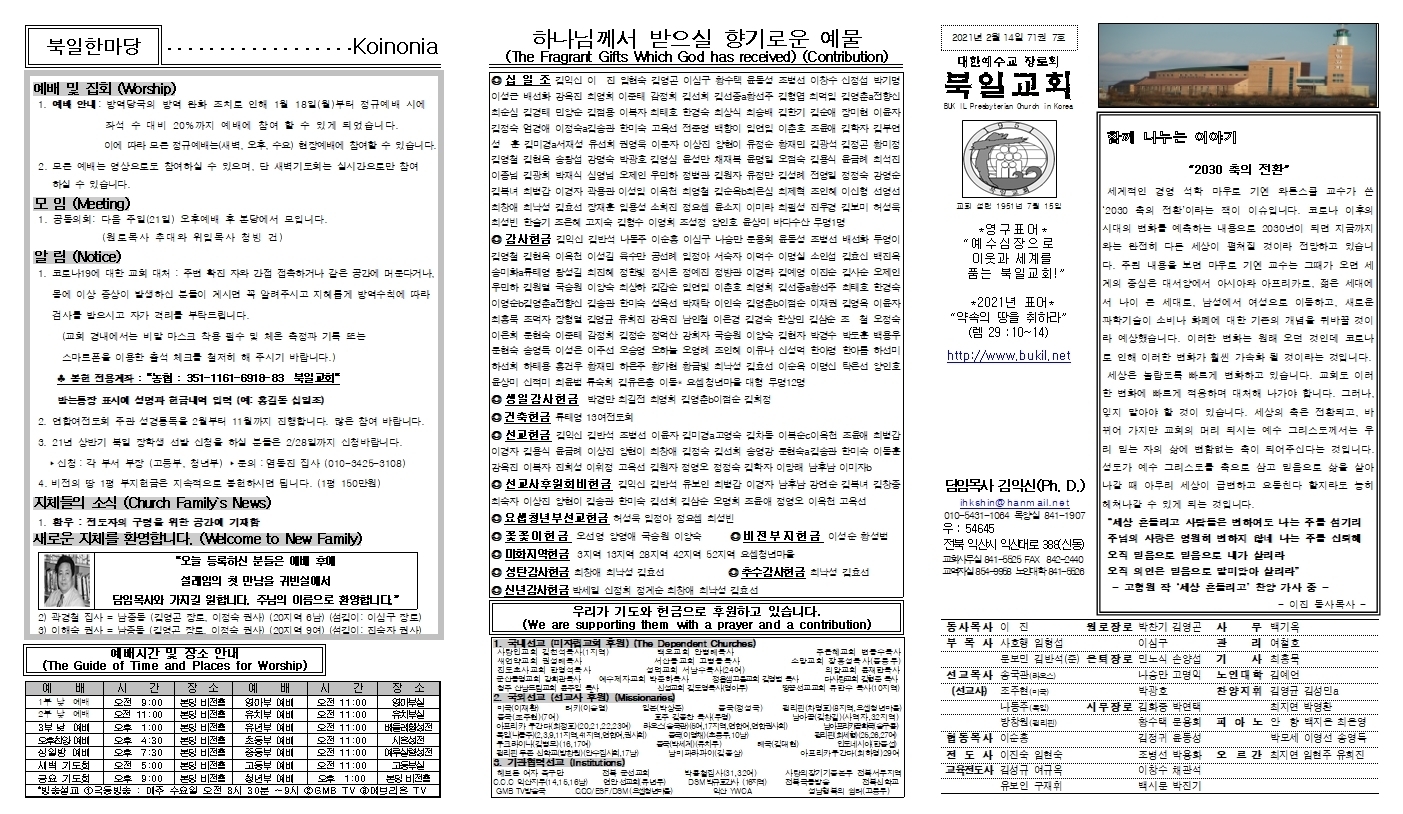 북일교회 2021년 2월 14일 주보입니다. 작성자사호행(명랑아)|작성시간21.02.12|조회수78 목록 댓글 0 글자크기 작게가 글자크기 크게가 장년주보(2021년 2월 14일) (1).pdf431.41KB 첨부파일첨부된 파일이 3개 있습니다. jpg 파일 장년주보(2021년 2월 14일) (1)002.jpg 다운로드 jpg 파일 장년주보(2021년 2월 14일) (1)001.jpg 다운로드 pdf 파일 장년주보(2021년 2월 14일) (1).pdf 다운로드 다음검색 현재 게시글 추가 기능 열기 북마크 신고 센터로 신고 댓글 댓글 0 댓글쓰기 답글쓰기 댓글 리스트