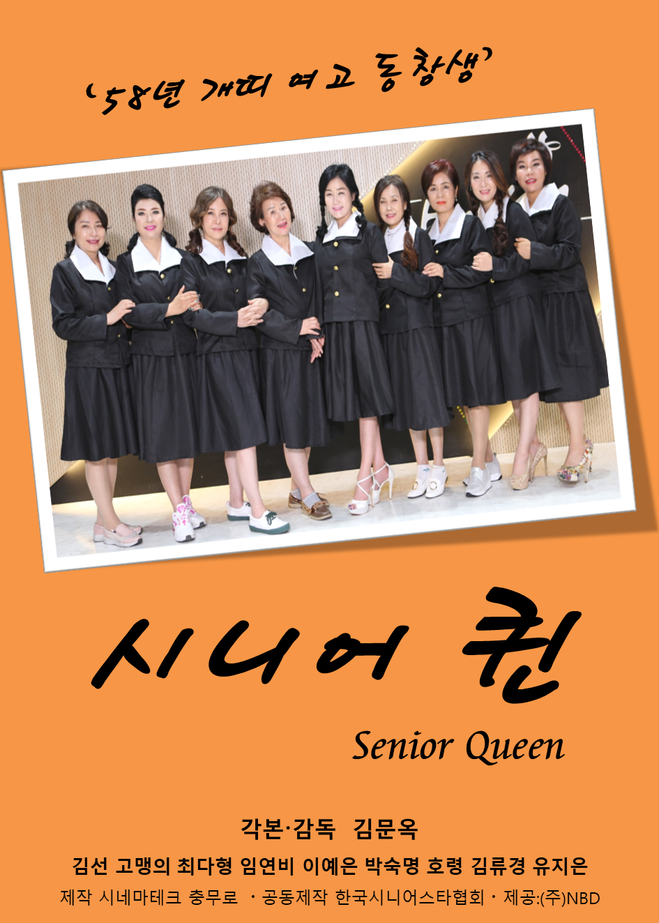 720만 베이비부머 시대를 맞는 2020년도에 58년 개띠 여고 동창생들의 삶과 애환과 꿈을 그린 영화 ‘시니어 퀸’(각본,감독:김문옥/촬영:정재승/공동주연;김선,고맹의,최다형,임연비,박숙명,호령,유지은,김류경,이예은/제작:시네마테크 충무로/공동제작:한국시니어스타협회)의 티져 포스터가 공개되었다.