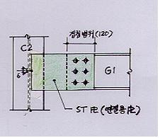 ․기둥(C2)과 Girder(G1)의 연결을 위하여 기둥에 수직으로 플레이트설치(가능한 공장용접 유도)