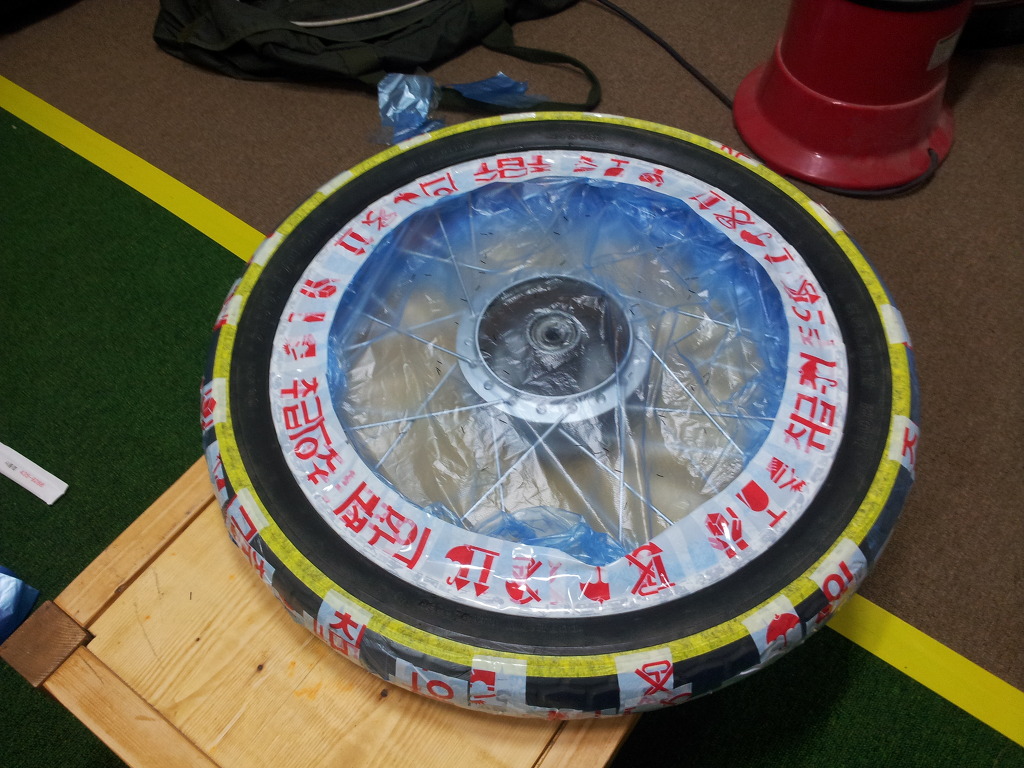림은 크롬을 유지하고 스포크까지만 도색하고 싶었어요...