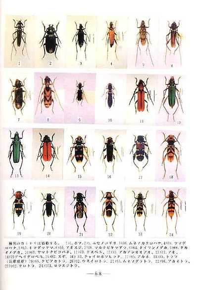 이 설명서의 내용 1.1984 년까 지의 일본 (쿠릴 포함) 하늘소과 딱정벌레의 알려진 모든 종류에 대해 주로 분류학적인 검토를 실시했다. 2 일본의 토착 가능성이 적은 의문 씨와 나와 있기는하지만 알 수없는 종류도 설명했다. 3. 새로운 속 신종 새로운 변종을 권두에 나열했다. 본서의 특징 1. 아과에서 부족에, 자손 속에, 속에서 종에 대한 검색 표를 모든 종류에 붙어 있고 식별 공용에 제공했다. 2. 아과, 족 속 묘사는 짧게하고 종을 모양으로 특징 (암수 구별 방법을 포함)를 설명하는데 역점을 두었다. 3. 시노니밋쿠 목록을 클릭하고 원산지와 종류 표본의 위치를 나타냈습니다 연구자의 편의를 도모할 수있다. 4 각각의 기생 식물이 게재되어 성충의 생태에 대해서도 상세하다. 5. 분포는 코지마에도 최대한 게재하도록 노력하고 부현 다른 도서 다른 분포도 (595도)을 붙였다. 6. 게니타리아 등의 형태도 (146도)이 다수 게재되고있다. 본문의 장점 1. 일본에 확실하게 분포하고있는 모든 종 (670 종 2146 마리)을 사진으로 보여주었다. 2.6 × 7cm 판 1 마리씩 촬영했기 때문에 소형 종도 크게 확대 (최대 7.4 배), 선명한 그림으로 되었기 때문에 식별이 용이하다. 3 각 사진 아래의 번호는 본문의 종류 번호 및 데이터의 번호와 일치한다. 괄호 안에 지명이 붙어있는 것은 그 종류가 국내에서 변종 또는 그에 준하는 정도에 지역 차이를 보이고 있다고 생각하는 것으로, 지명은 그 표본의 산지를 보여준다.