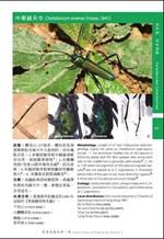 香港天牛 Longhorn Beetles of Hong Kong Yui Vor, 2009. A5, 149pp. 1,470円(税込・送料別) 香港に産する3科127種のカミキリムシを鮮明な写真で紹介するハンドブック。1種1ページで1~3枚の成虫の生態写真(一部標本写真、幼虫・蛹の写真含む)と、形態・生態・香港における分布を簡潔に解説。香港におけるカミキリ研究史1ページ、部分写真を用いた香港産ノコギリカミキリ亜科の種への検索表、香港産トラカミキリ族の属への検索表あり。テキスト:中国語(繁体字)・英語を併記