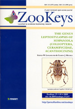 Notes: The generic differences and similarities between Leptostylus LeConte and Leptostylopsis Dillon (Coleoptera: Cerambycidae: Acanthocinini) are discussed. Leptostylopsis is redescribed and the following species are transferred from Leptostylus to Leptostylopsis: Leptostylopsis annulipes (Fisher 1942), comb. n.; Leptostylopsis poeyi (Fisher 1925), comb. n.; and Leptostylopsis viridicomus (Fisher 1942), comb. n. Leptostylopsis hispaniolae (Fisher 1942) is a new synonym of Leptostylopsis annulipes (Fisher 1942). Seven new species of Leptostylopsis from Hispaniola are diagnosed, described, and illustrated: L. basifulvus Lingafelter and Micheli, sp. n.; L. caliginosus Lingafelter and Micheli, sp. n.; L. chlorescens Lingafelter and Micheli, sp. n.; L. humerofulvus Lingafelter and Micheli, sp. n.; L. perfasciatus Lingafelter and Micheli, sp. n.; L. puntacanaensis Lingafelter and Micheli, sp. n.; and L. thomasi Lingafelter and Micheli, sp. n. Redescriptions and distributional data are provided for the six previously described species known from Hispaniola, and a dichotomous key to all thirteen species of Leptostylopsis from Hispaniola is provided.