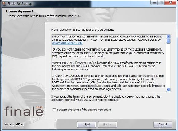 이번에는 Finale 2012 설치해보도록 하겠습니다.