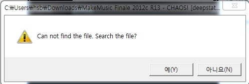 파일을 찾을 수 없습니다. 파일을 검색? 라는 뜻입니다 "예" 클릭