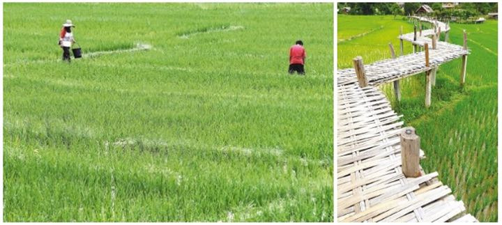 걷기만 해도 힐링이 되는 대나무 다리들이 논 위를 가로지르는 730m 길이로 끝에서 끝까지 걸어가는 데만 15분가량 걸립니다.
