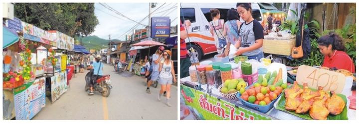 의류, 가방, 수공예품, 기념품은 물론 꼬치, 까이양, 쏨땀, 교자, 스시 등 각종 먹거리가 가득해 여행자들이 풍요로운 저녁을 즐길 수 있으며, 오후 5~6시에 시작되는 야시장은 저녁 8~9시에 절정을 이룹니다.