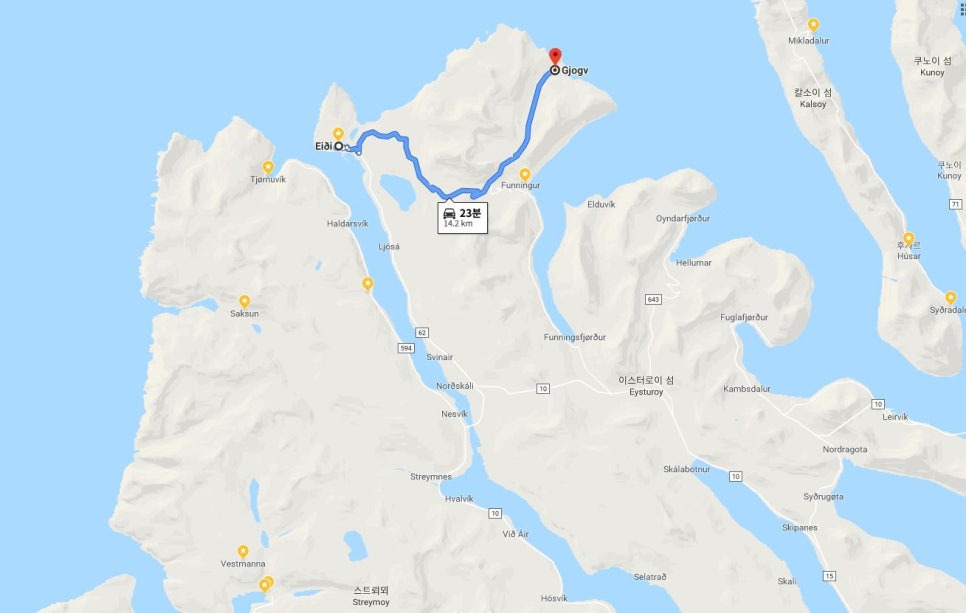 그리고 최종 목적지인 죠그(Gjogv)로 가기 위해 에이디 마을을 경유하기로 했다.
