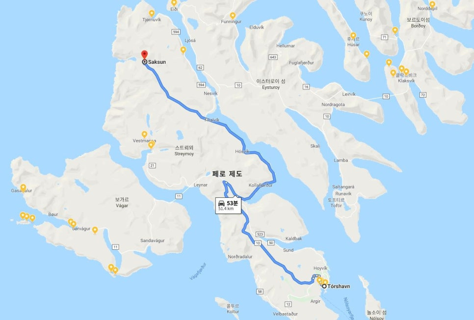 토르스하운을 떠나 같은 스트뢰뫼섬 북부에 있는 삭순으로 향했다.