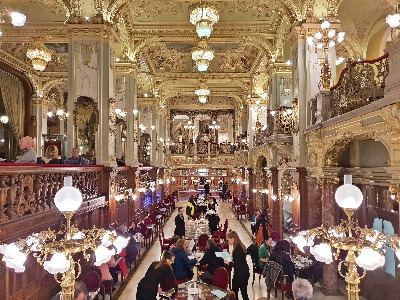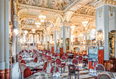 뉴욕 팰리스 호텔의 심장부 인 뉴욕 카페 (New York Café)는 19세기에 뉴욕 보험회사 지점이었으며 당시 언론가, 작가, 배우 등 많은 유명인들이 토론하던 사교의 장소였다고 합니다. 아르누보 양식으로 지어진 건물 외관과 고급스러운 내부 인테리어로 세상에서 가장 아름다운 카페로 불립니다. ※ 카페 현지 사정에 의해 예약이 어려울 경우 동급의 다른 카페로 변경될 수 있습니다.