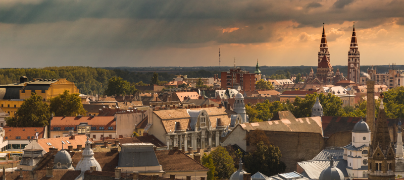 헝가리 남부의 중심인 세게드는 네 번째로 큰 도시이자 중요한 항구 도시입니다. 작지만 헝가리의 문화와 생활을 잘 보여주는 곳입니다. 1879년 티서 강이 범람하여 모든 시가지가 파괴되어 모든 건물이 침수되었고, 19세기 도시계획으로 인해 현재의 모습을 간직하고 있습니다. 세게드는 2차 대전을 거치면서 오늘날의 주요 산업인 식품가공업과 경공업이 발달하였습니다. 식품가공업 발달로 세게드의 살라미와 파프리카가 주요 특산물입니다.