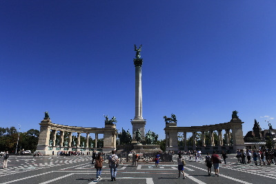 헝가리 정착 1000년을 기념하여 1896년에 세워진 기념비가 있는 광장입니다. 36m의 원주 기둥 꼭대기에는 천사 가브리엘이 서 있고 밑의 받침대에는 헝가리의 각 부족을 이끄는 7명의 지도자들이 있습니다. 원주 양 옆의 열주에는 헝가리왕의 상들이 쭉 늘어서 있고 이 기둥을 기준으로 반원의 형태로 주랑이 2부분으로 나누어져 있습니다. 이곳에는 헝가리의 역대 왕과 영웅들이 연대순으로 조각되어 있습니다.